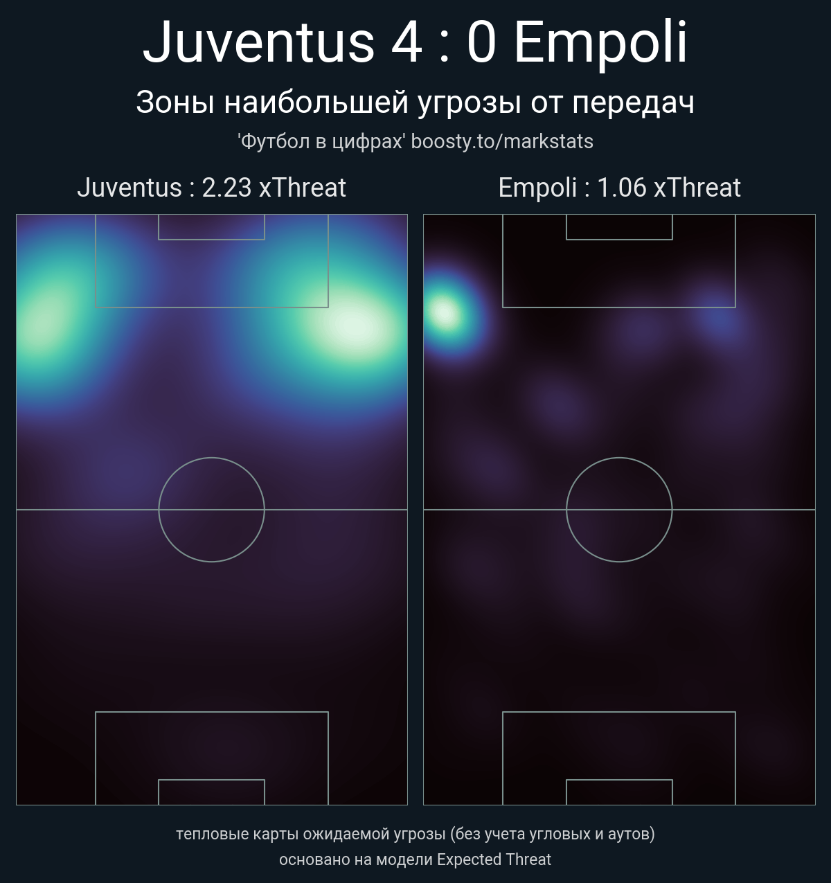 ▪ xThreat без учета угловых: 2.23 - 1.06