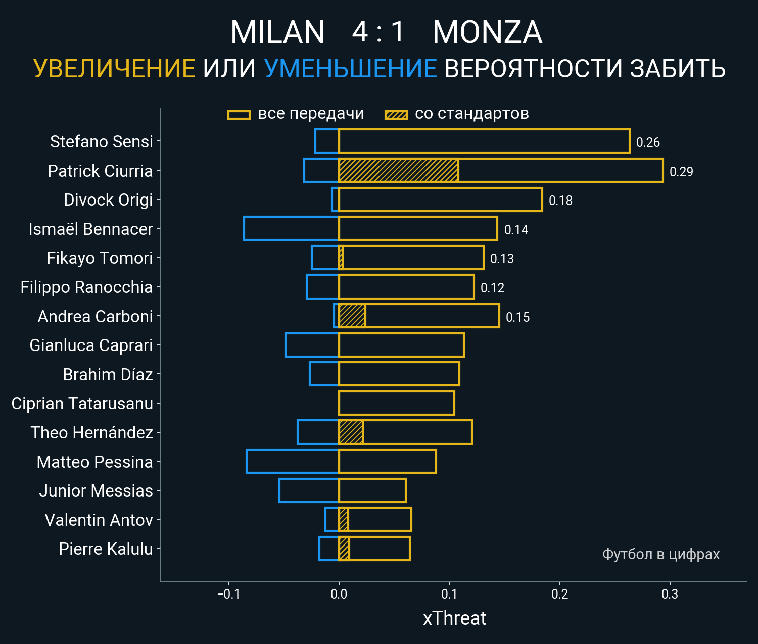 ▪ 0.19 очка xT (+0.11 со стандартов)