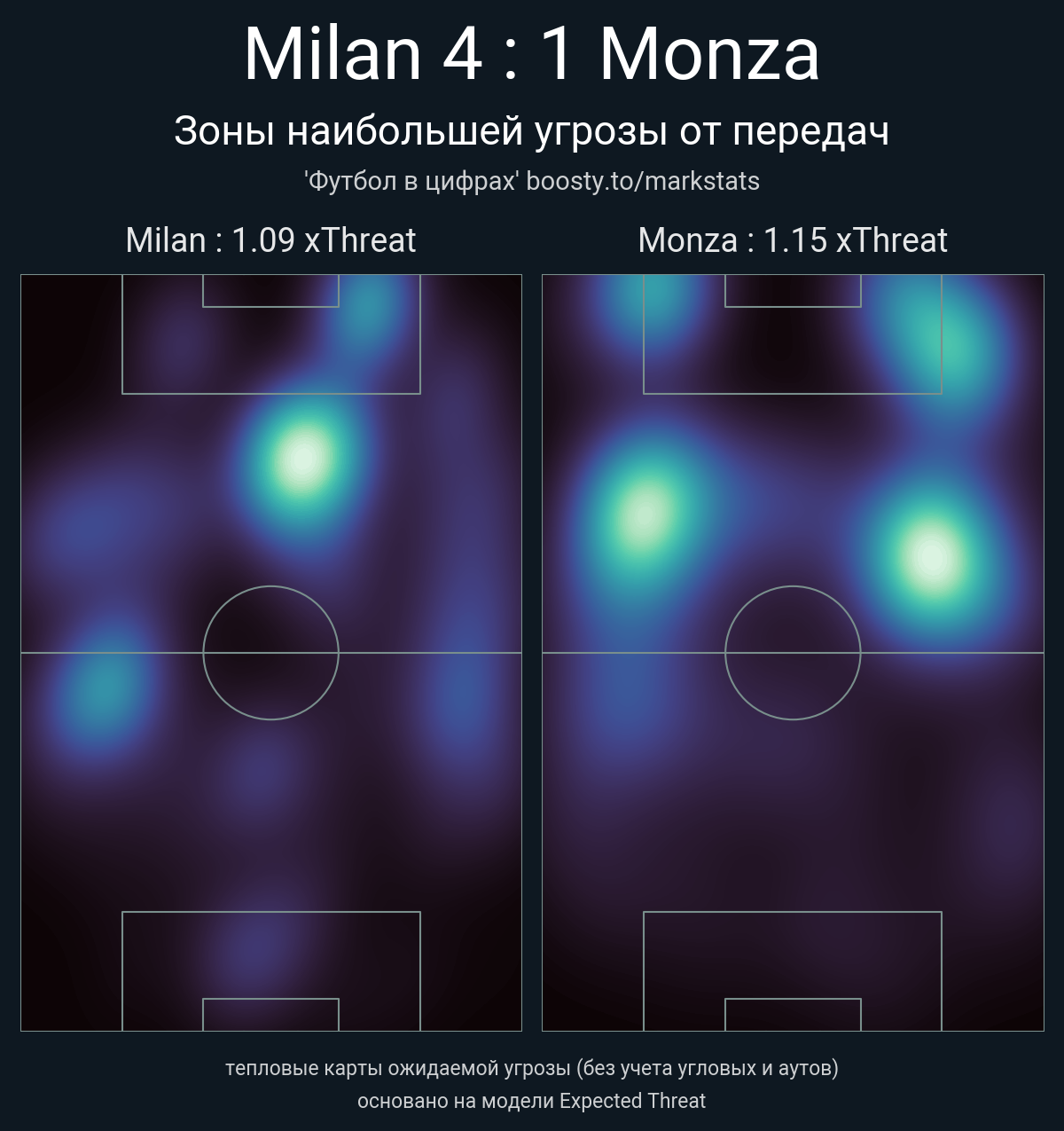 ▪ xThreat без учета угловых: 1.09 - 1.15