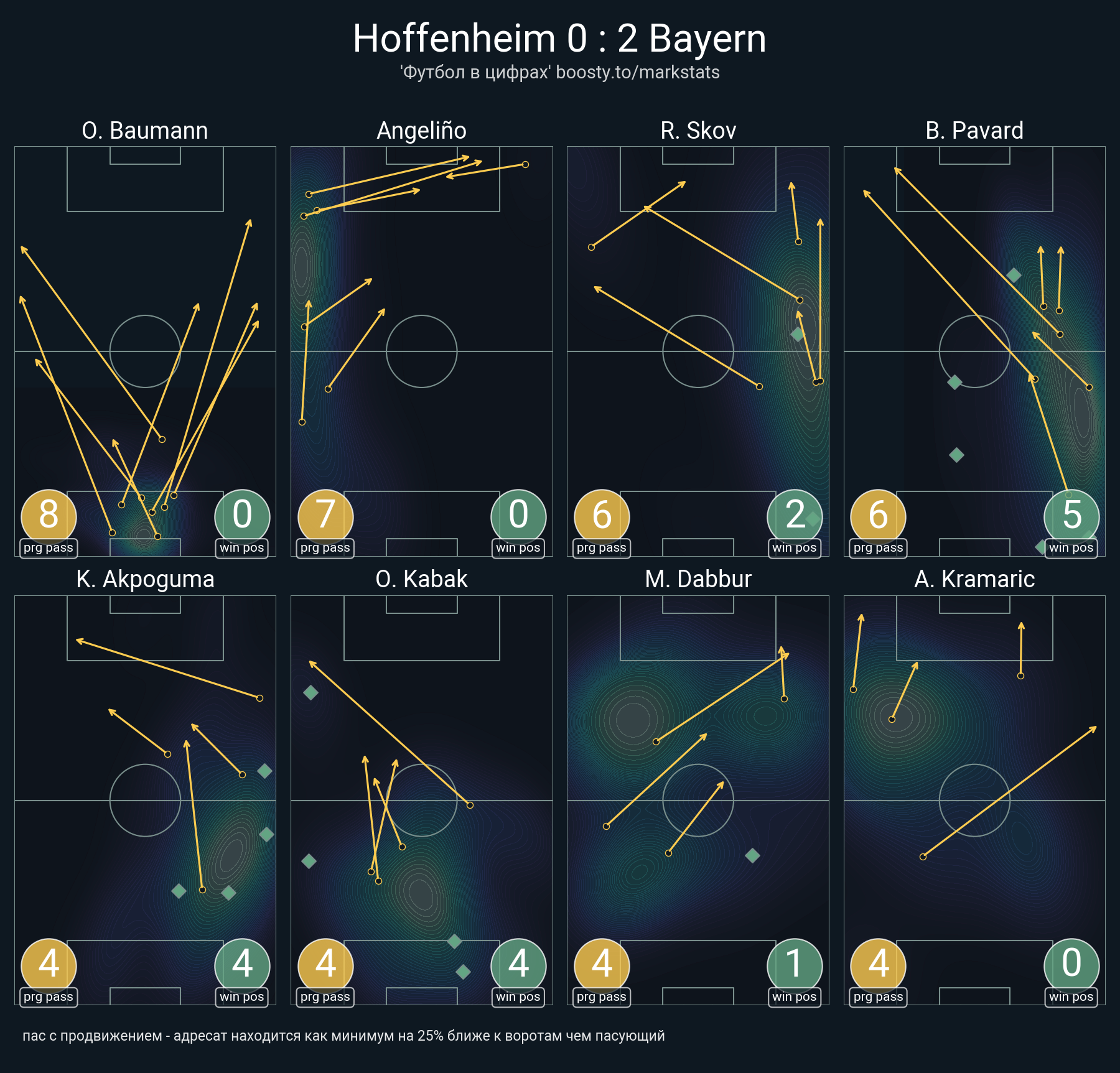 ▪ 25 успешных передач из 33 попыток (1 ассист, 1 под удар, 3 с продвижением, 10 на трети соперника)