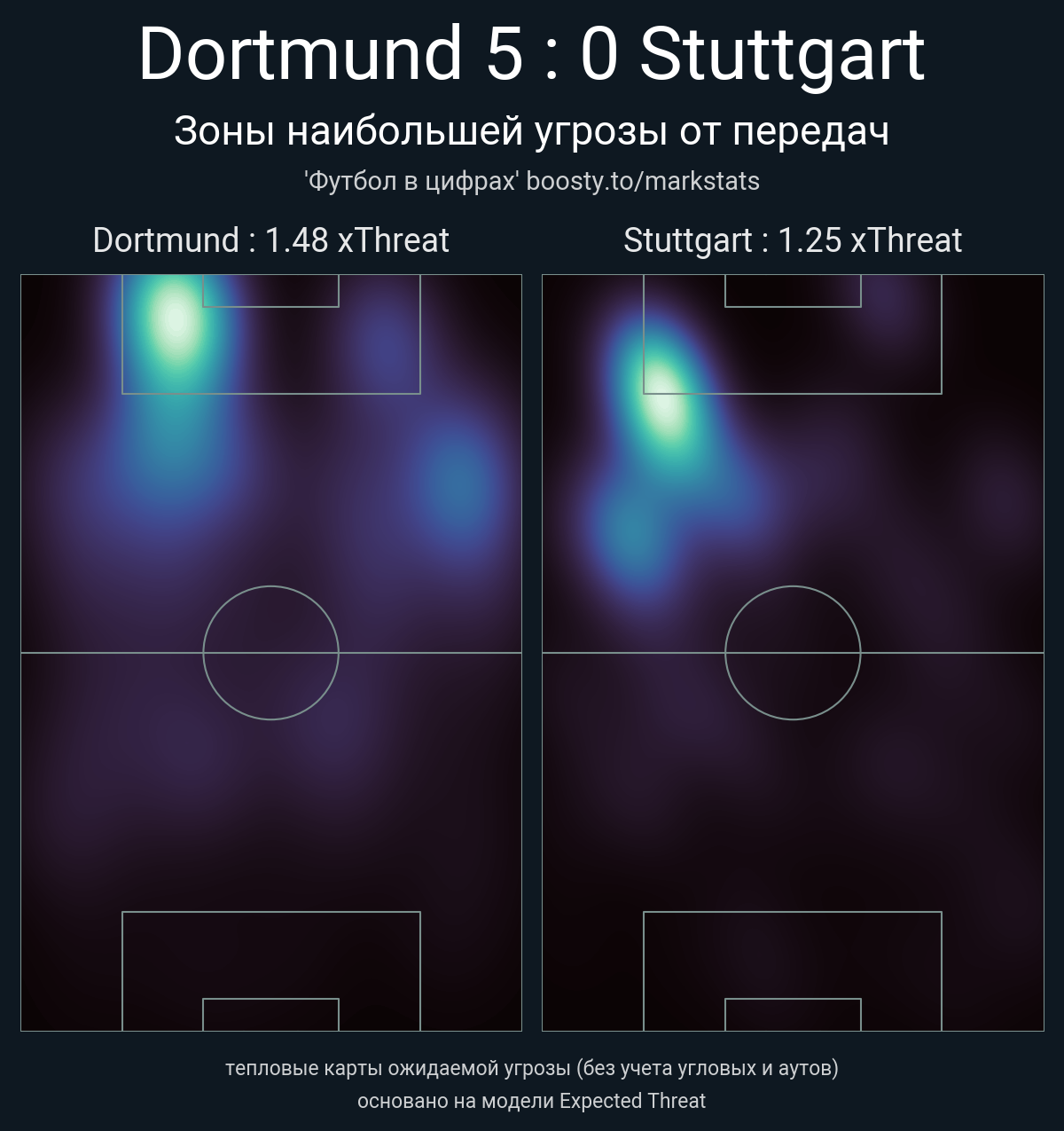▪ xThreat без учета угловых: 1.48 - 1.25