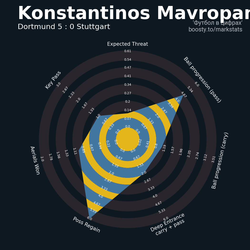 ▪ 0.61 очка xT (+0.03 со стандартов)