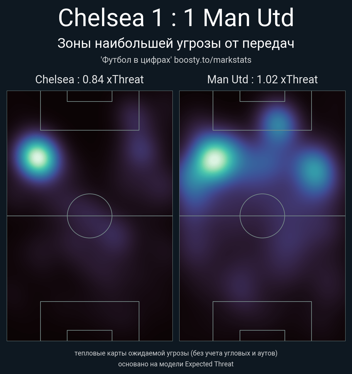 ▪ xThreat без учета угловых: 0.84 - 1.02