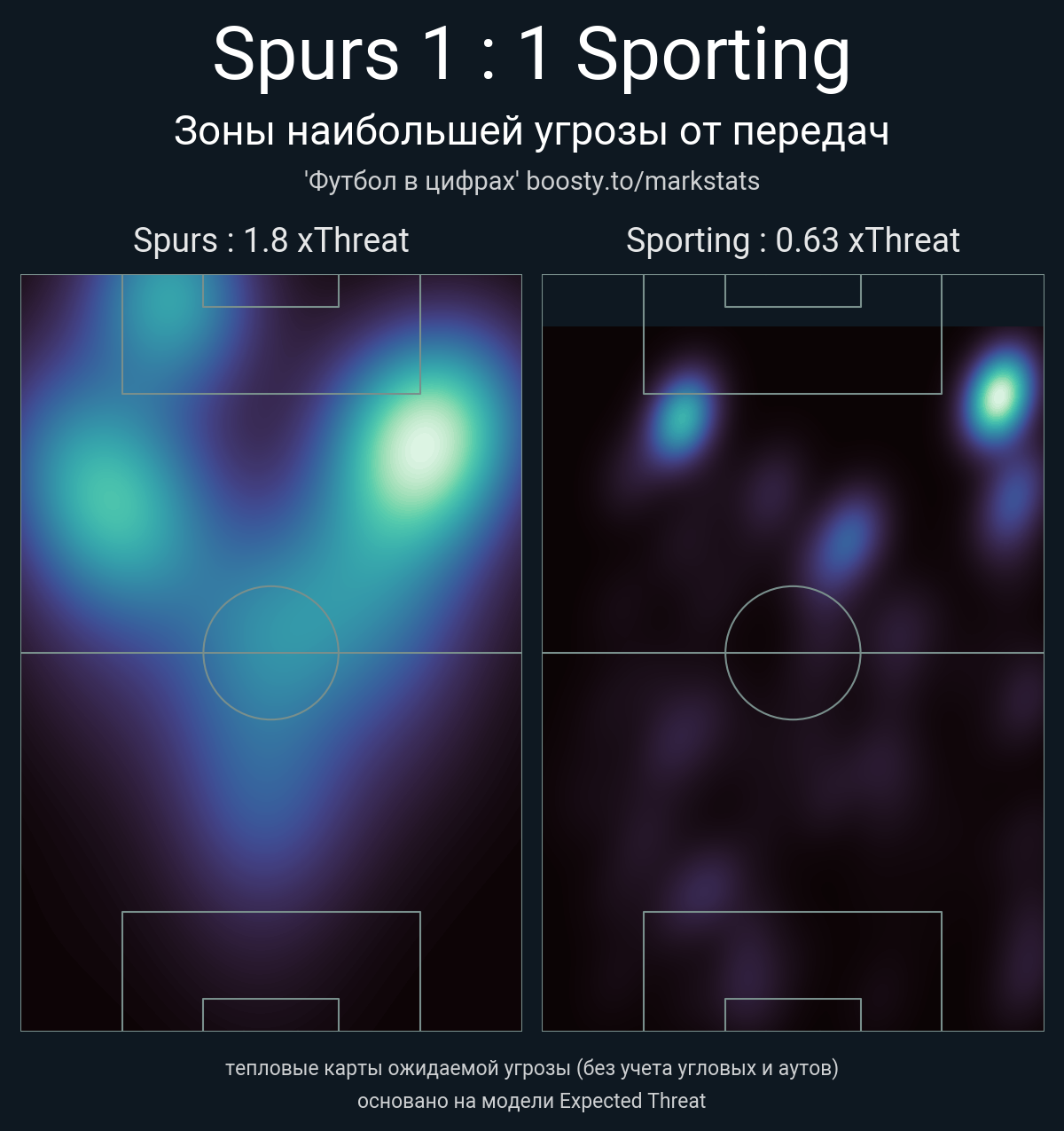 ▪ xThreat без учета угловых: 1.8 - 0.63