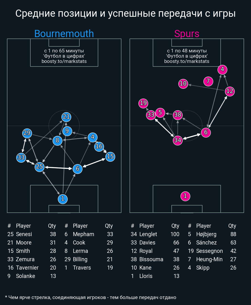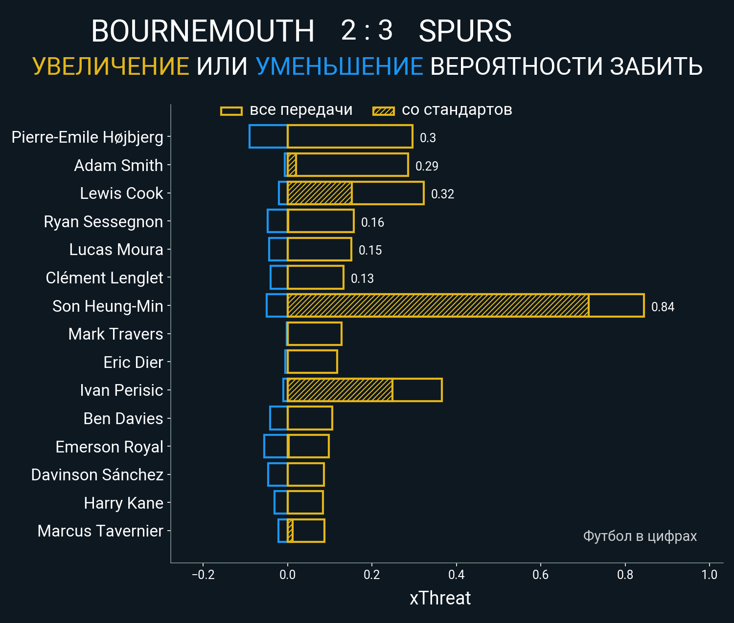 Футбол в цифрахСтатистика матча Bournemouth vs. Tottenham
