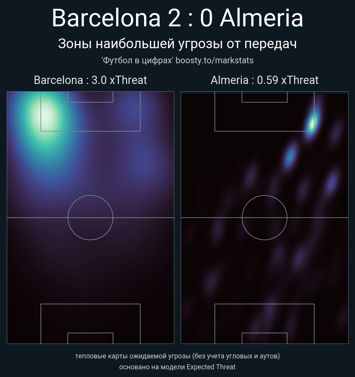 ▪ xThreat без учета угловых: 3.0 - 0.59