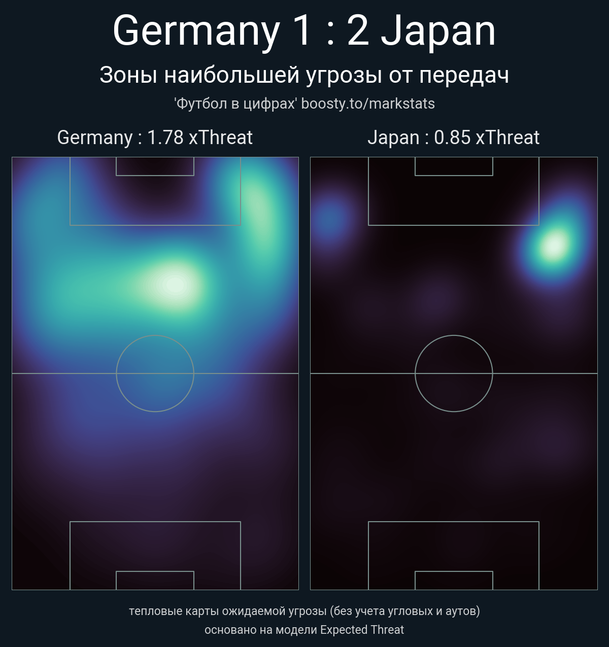 ▪ xThreat без учета угловых: 1.78 - 0.85