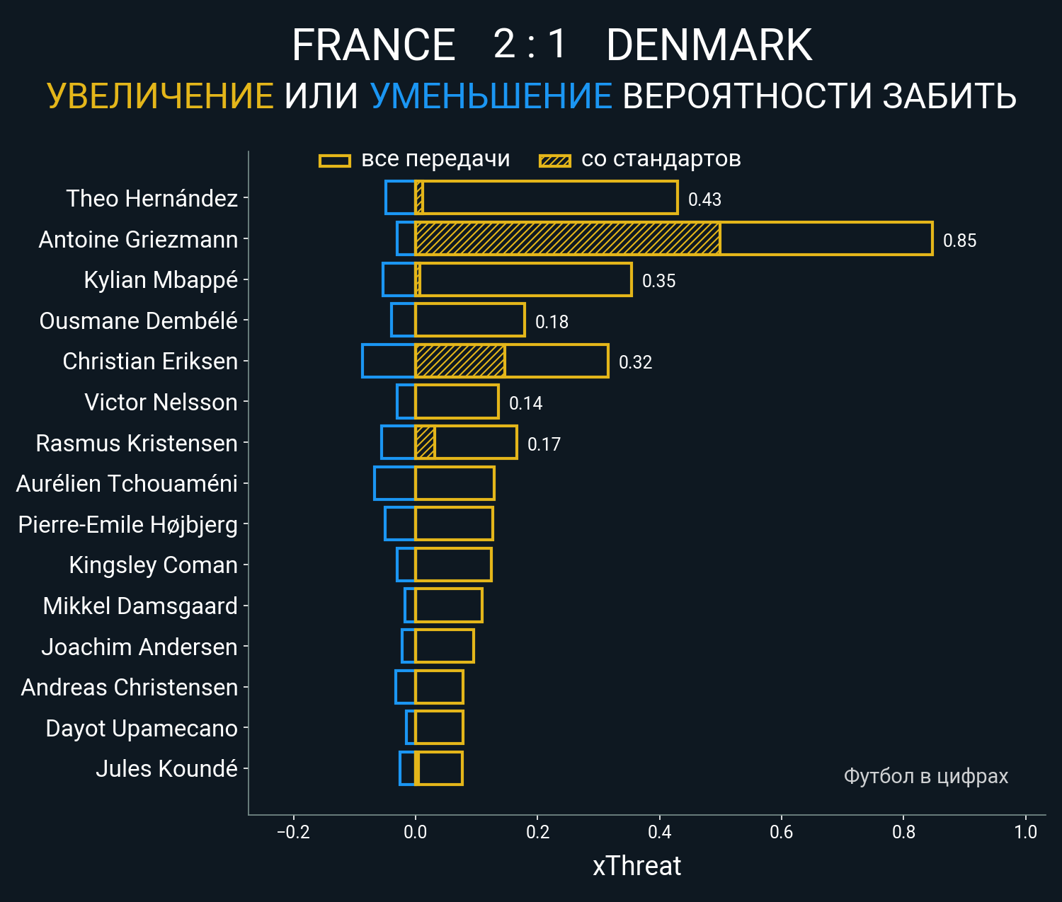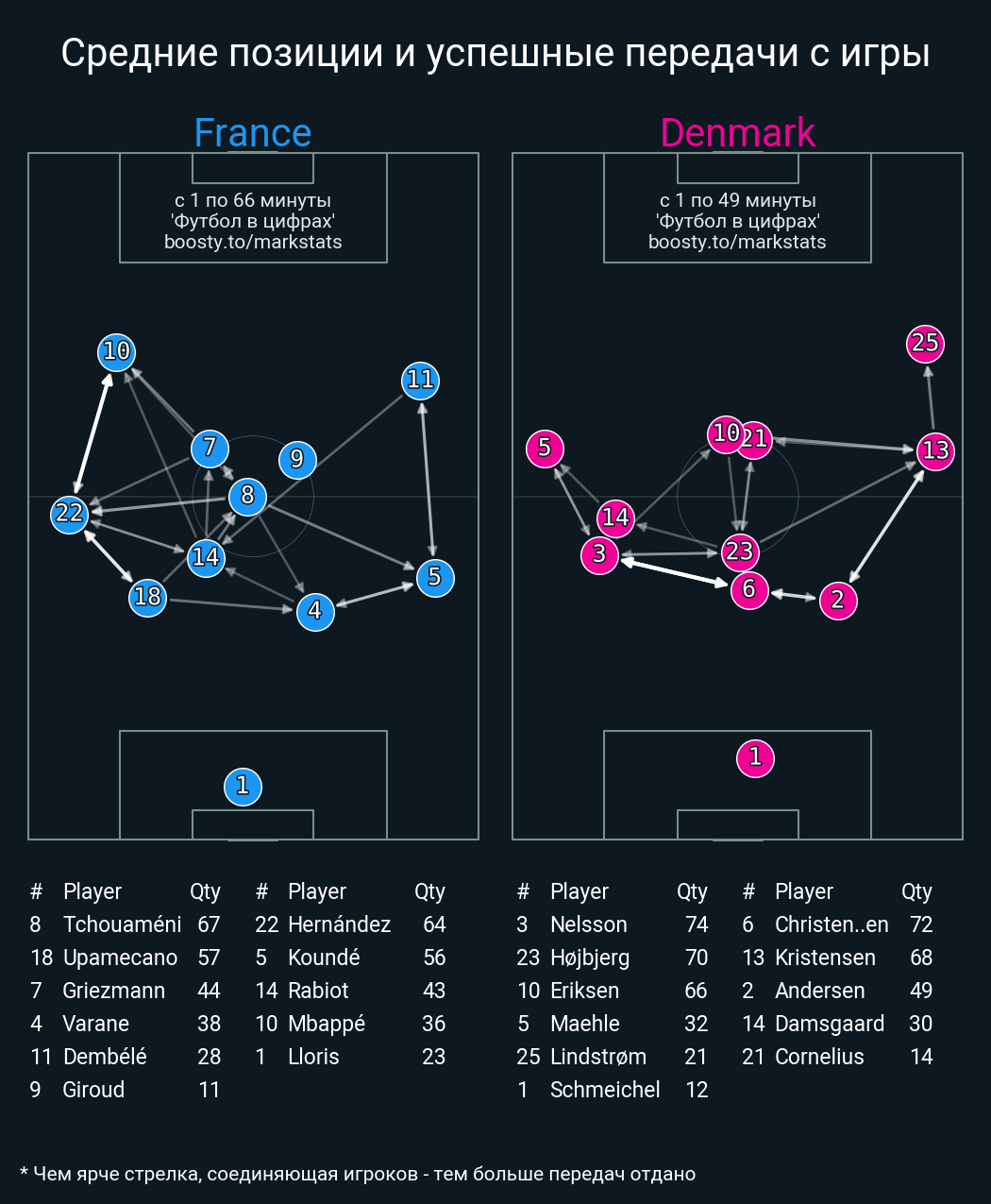 Футбол в цифрахСтатистика матча France vs. Denmark