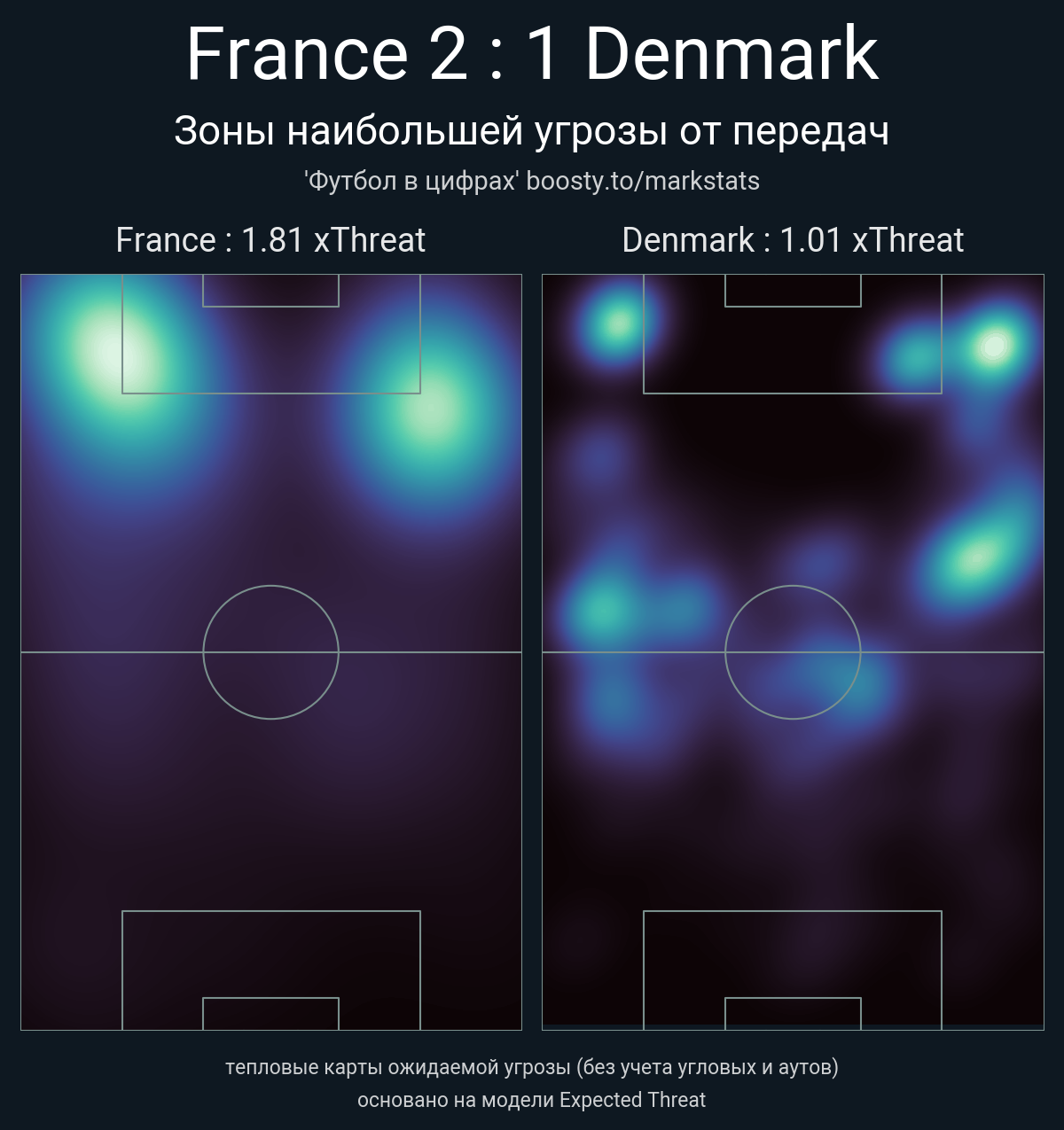 ▪ xThreat без учета угловых: 1.81 - 1.01