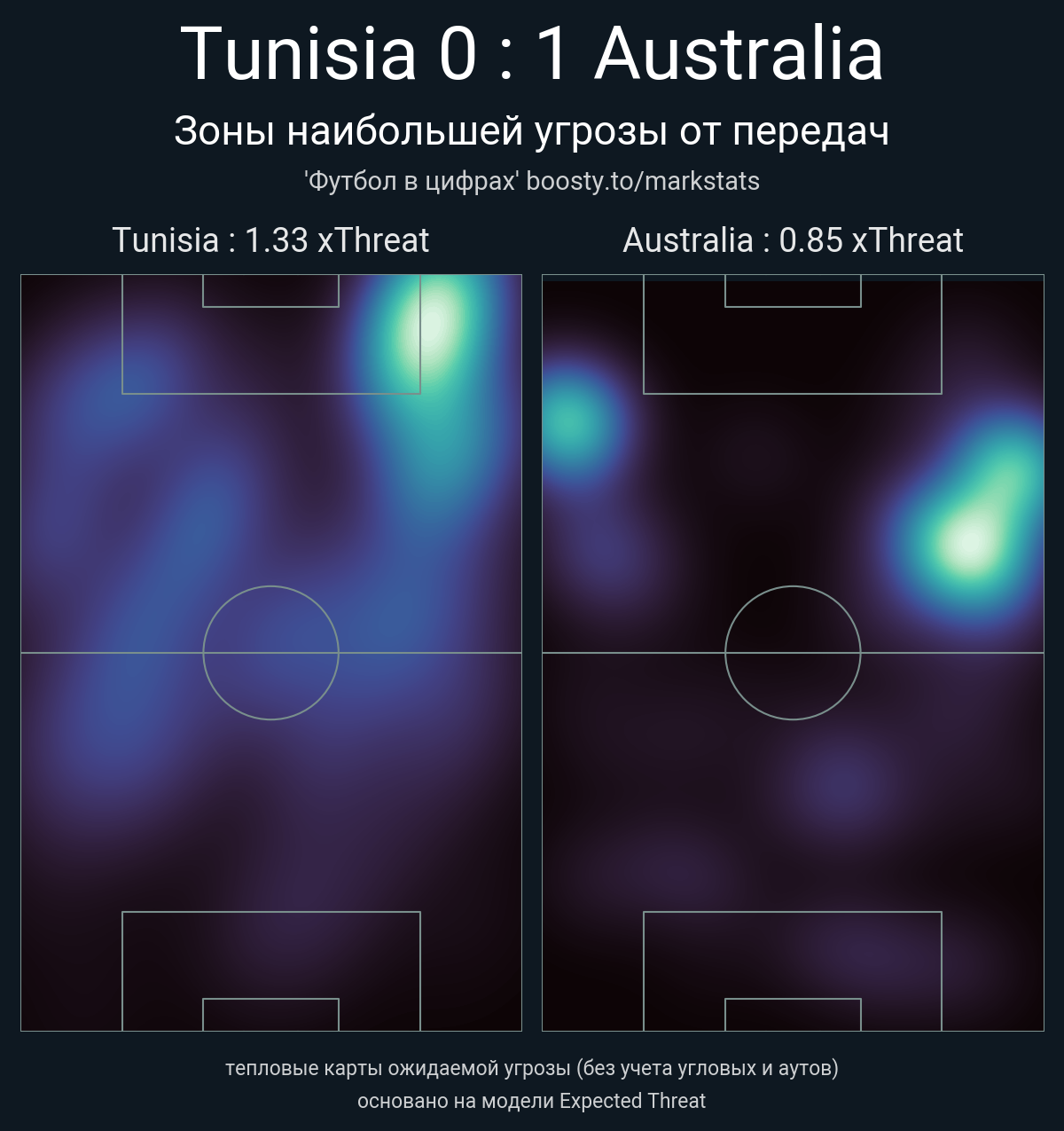 ▪ xThreat без учета угловых: 1.33 - 0.85