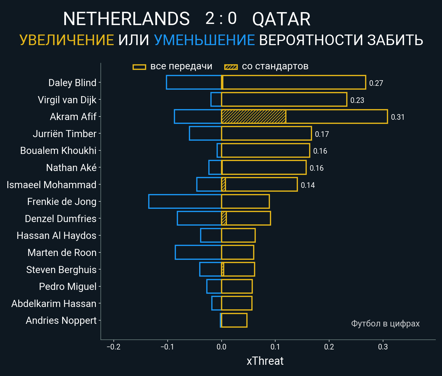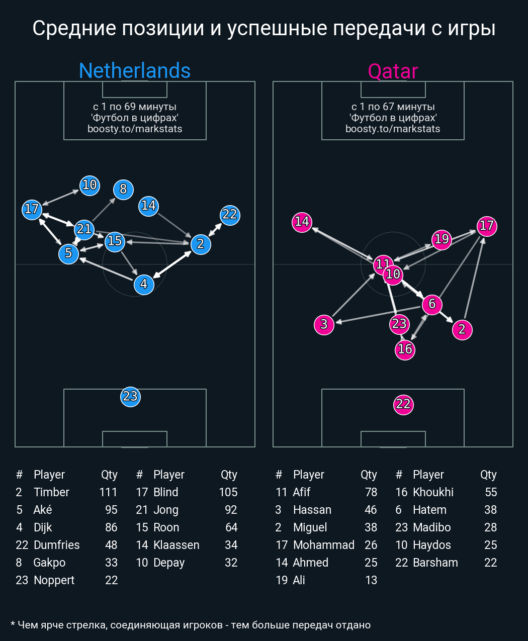 Футбол в цифрахСтатистика матча Netherlands - Qatar