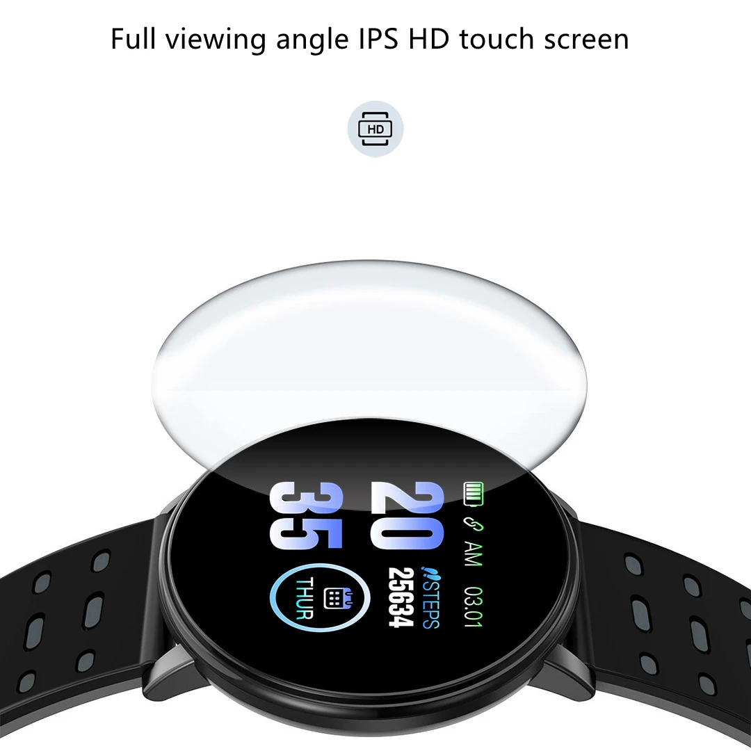 «2022 119 Plus Smart Watch Men Blood Pressure Waterproof Sport Round Smartwatch Women Fitness Tracker Bracelet For Android IOS» по лучшей цене на рынке! Всего за 4$ (380рублей)