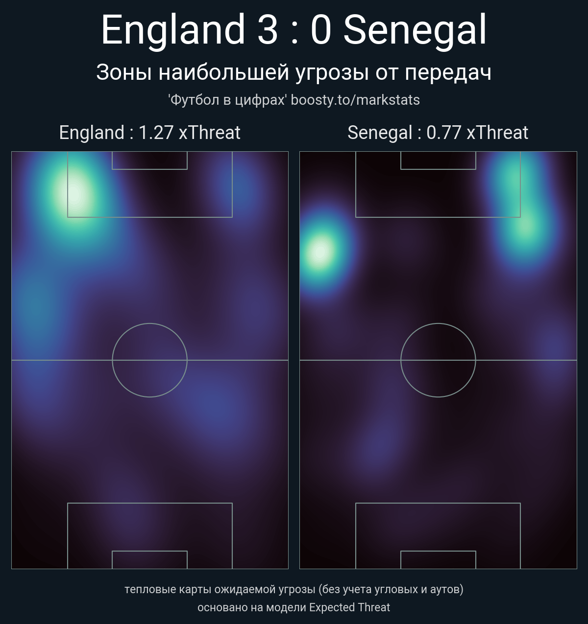 ▪ xThreat без учета угловых: 1.27 - 0.77