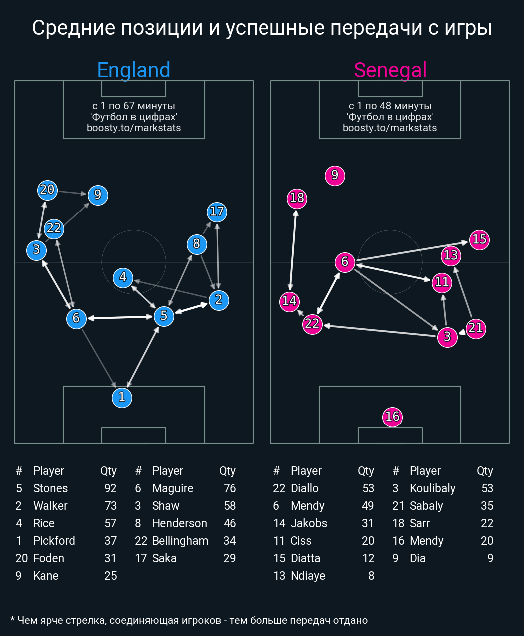 Футбол в цифрахСтатистика матча England vs. Senegal