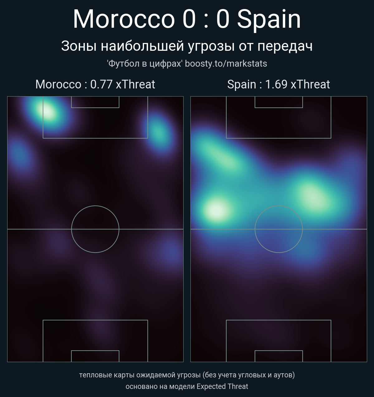▪ xThreat без учета угловых: 0.77 - 1.69