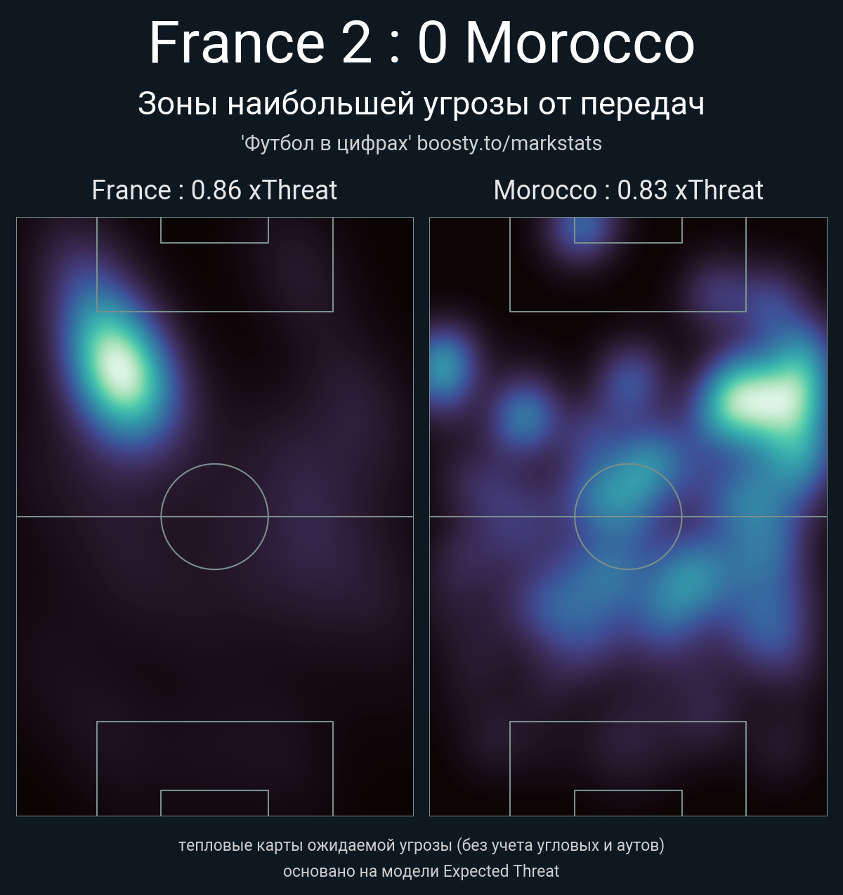 ▪ xThreat без учета угловых: 0.86 - 0.83