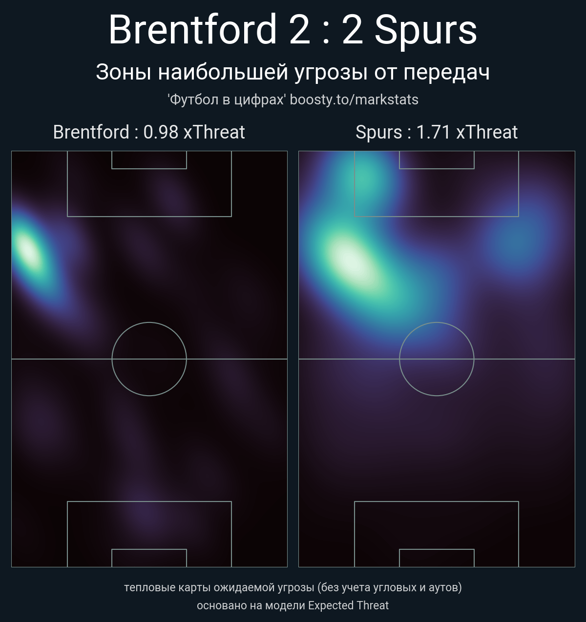 ▪ xThreat без учета угловых: 0.98 - 1.71
