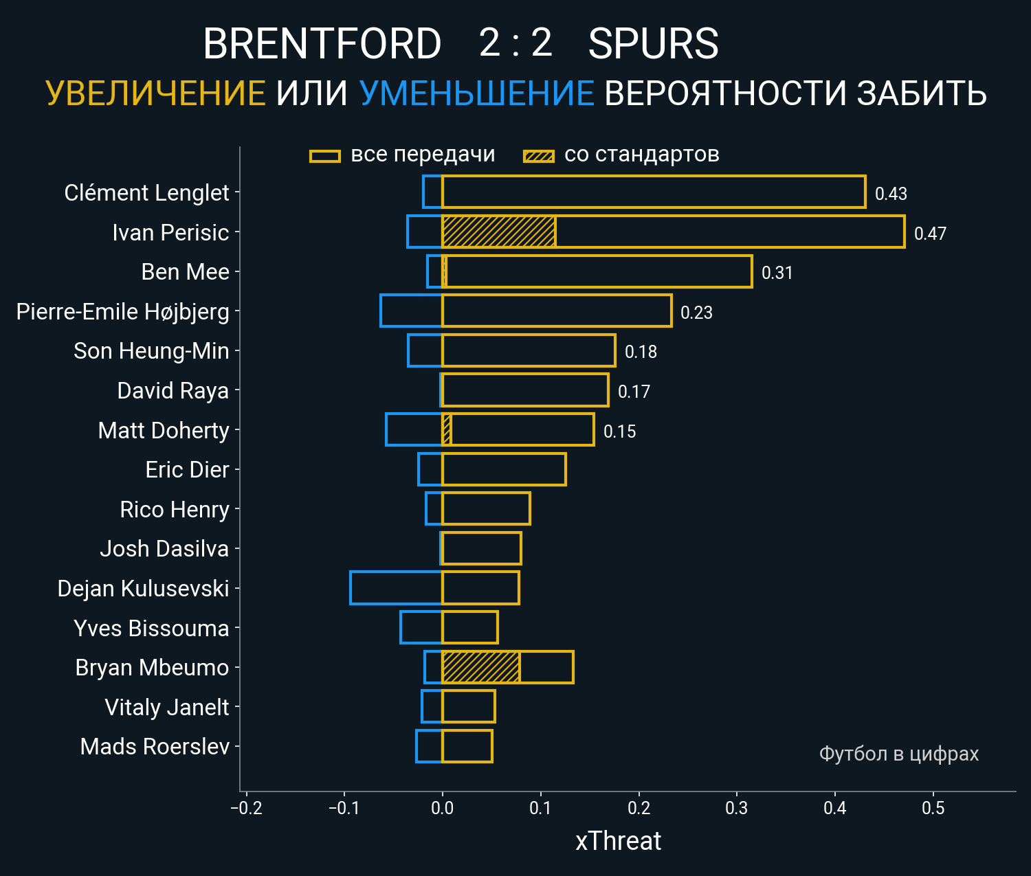 Футбол в цифрахСтатистика матча Brentford vs. Tottenham