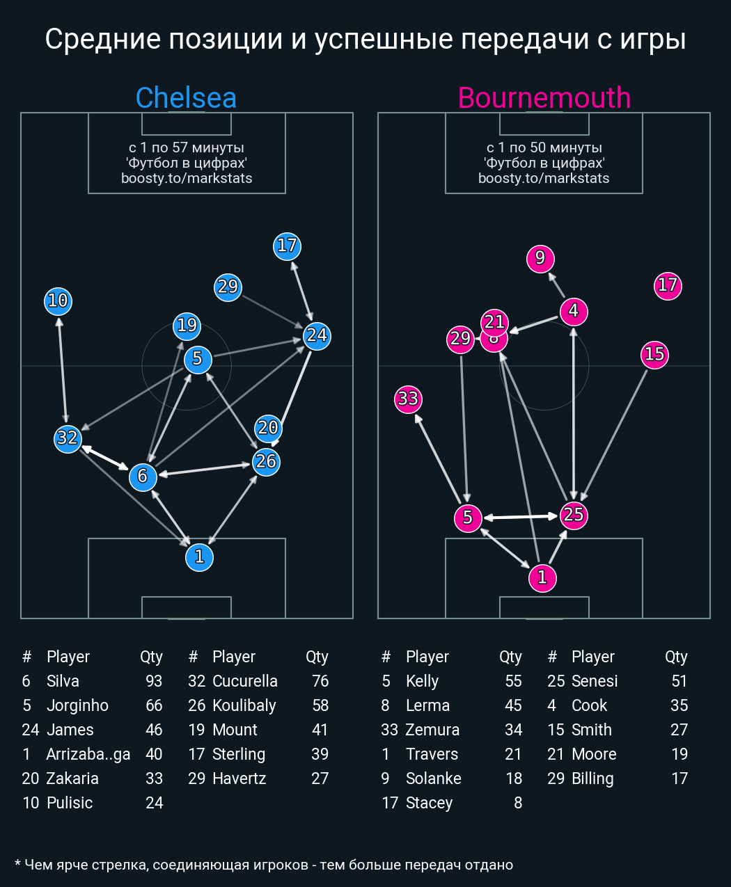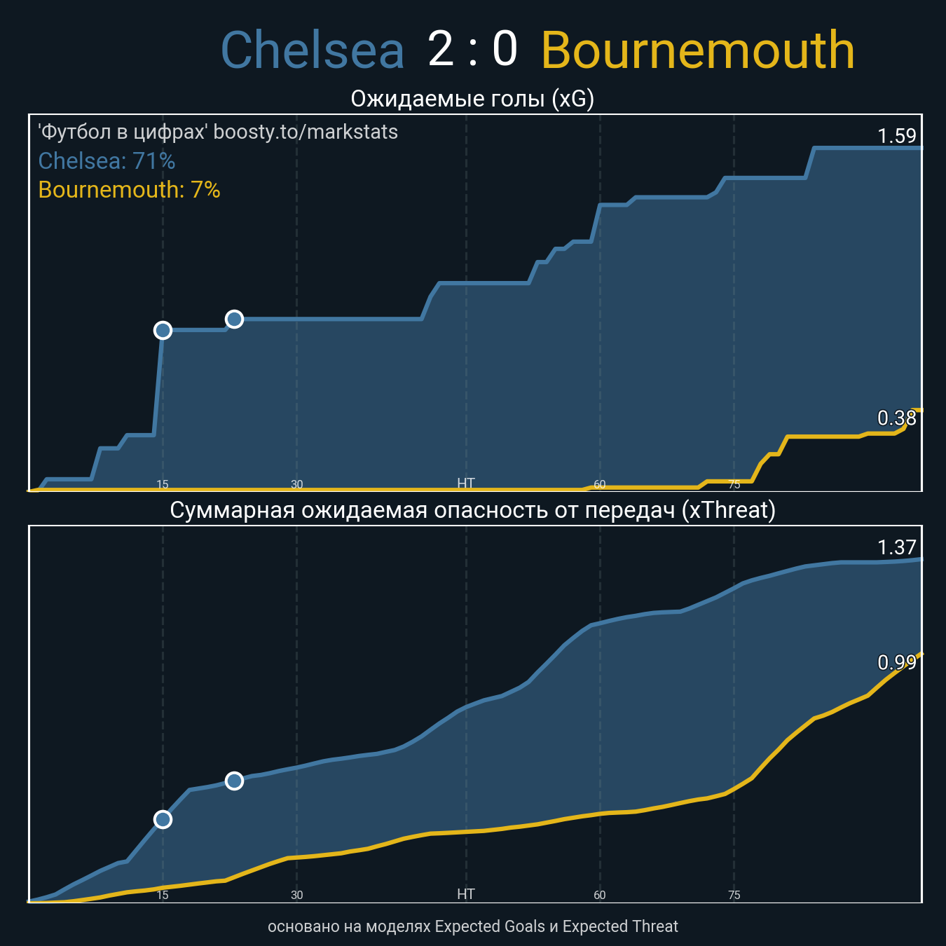 Футбол в цифрахСтатистика матча Chelsea vs. Bournemouth