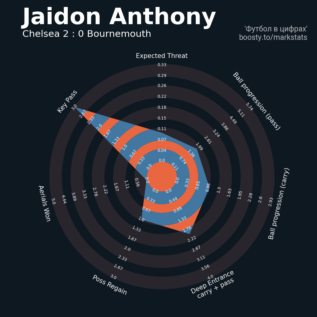 ▪ 0.13 очка xT (+0.02 со стандартов)