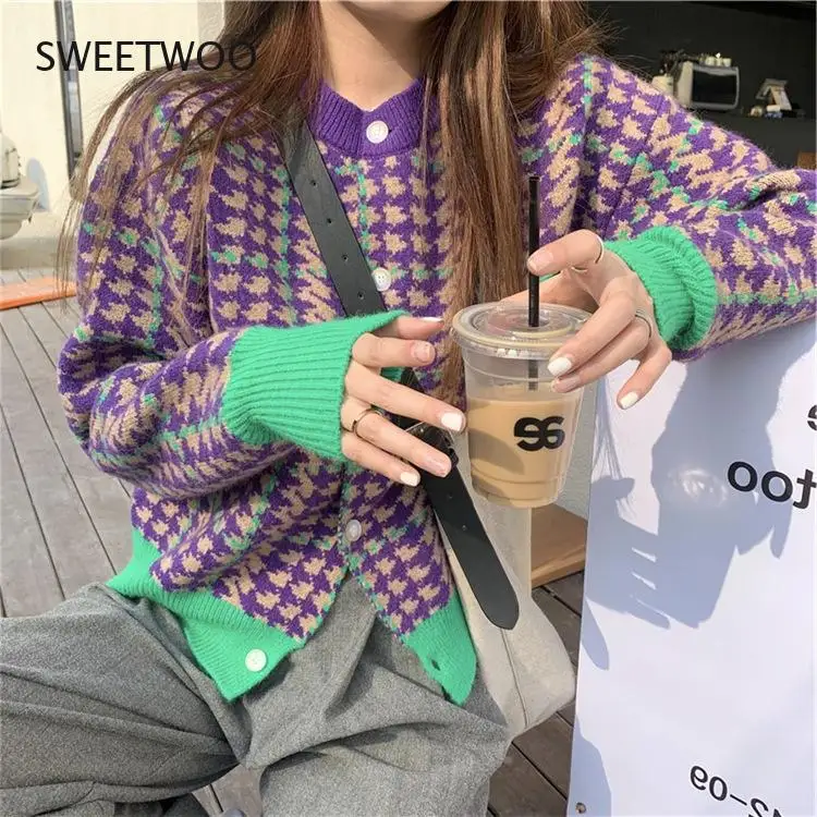 «2022 Autumn And Winter New Long-sleeved Western-style Knitted Cardigan Jacket Contrast Color Houndstooth Sweater Jacket Women» по лучшей цене на рынке! Всего за 18$ (1710рублей)