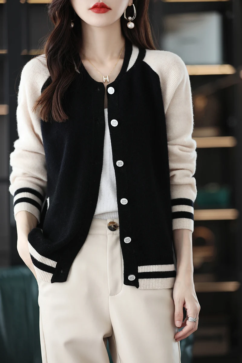«2022 Autumn And Winter Thickened Round Neck Wool Sweater Women Loose Color Blocking Knit Cardigan Comfortable Warm 100%Wool Tops» по лучшей цене на рынке! Всего за 42$ (3990рублей)