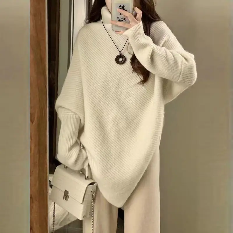 «2022 Autumn Winter Korean Fashion Irregular Turtleneck Solid Oversized Knitted Sweaters Women Solid Long Sleeve Pullovers Jumper» по лучшей цене на рынке! Всего за 24$ (2280рублей)