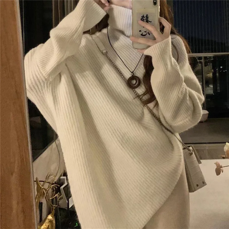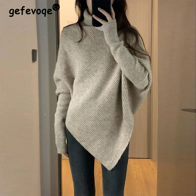 XCzhAupCДолго искали 2022 Autumn Winter Korean Fashion Irregular Turtleneck Solid Oversized Knitted Sweaters Women Solid Long Sleeve Pullovers Jumper, но не могли найти? Предоставляем вашему вниманию 2022 Autumn Winter Korean Fashion Irregular Turtleneck Solid Oversized Knitted Sweaters Women Solid Long Sleeve Pullovers Jumper по лучшей цене на рынке!