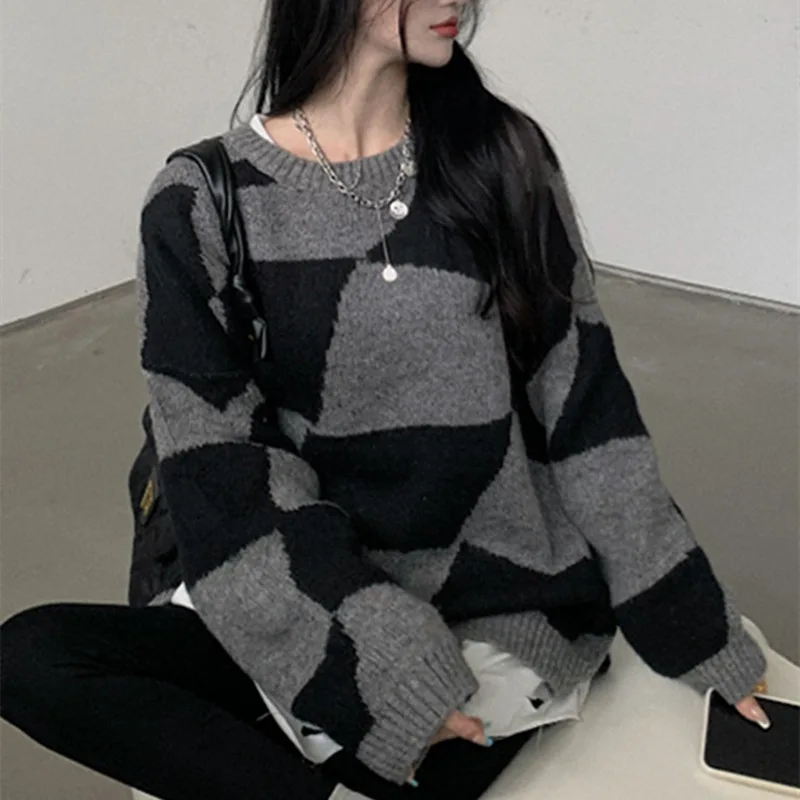 MsuxsHHsgДолго искали 2022 Autumn Winter Sweaters Women Loose Outwear O-Neck Personality Square Contrast Color Knitted Fashion Pullover Sueter Mujer, но не могли найти? Предоставляем вашему вниманию 2022 Autumn Winter Sweaters Women Loose Outwear O-Neck Personality Square Contrast Color Knitted Fashion Pullover Sueter Mujer по лучшей цене на рынке!