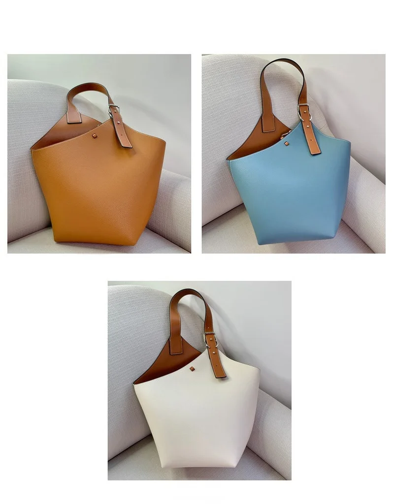 «2022 Designer Handbags High Quality Real Leather Contrast Color Large-capacity Wide-shoulder Bucket Bag Underarm Bag Simple Tote» по лучшей цене на рынке! Всего за 70$ (6650рублей)