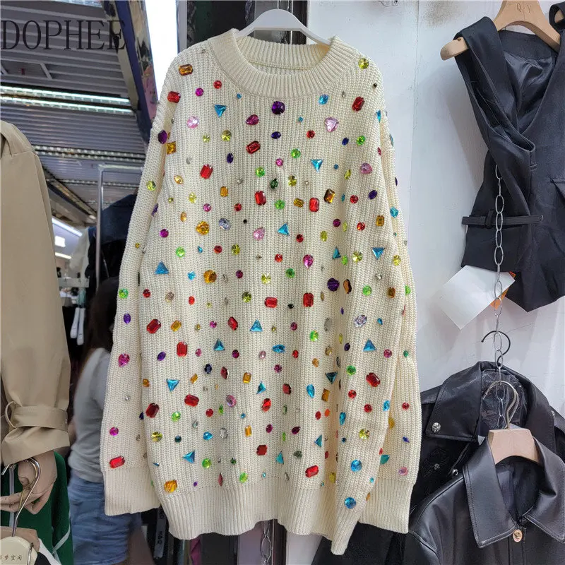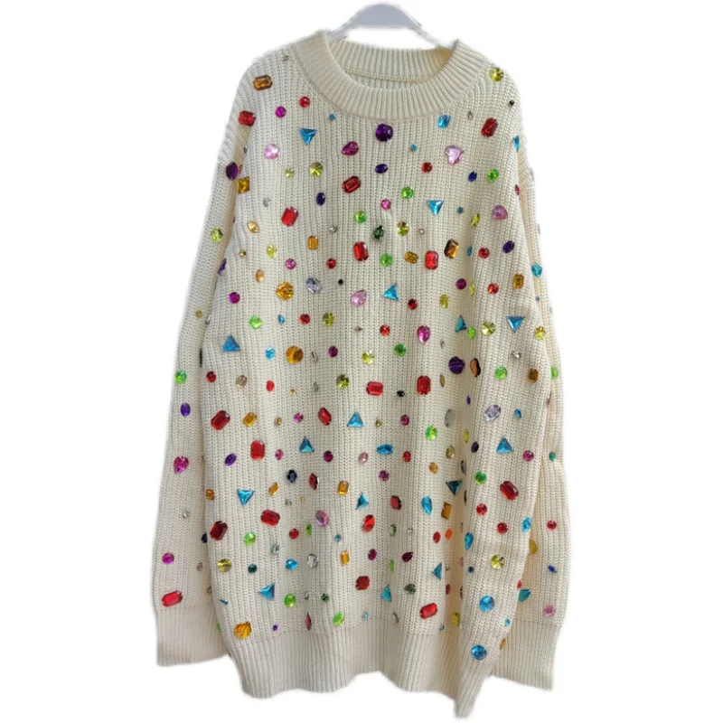 «2022 New Autumn Beaded Colored Diamonds Loose Pullover Top Lazy Wind Mid-long Knitted Top Casual Long-sleeved Sweaters for Women» по лучшей цене на рынке! Всего за 35$ (3325рублей)