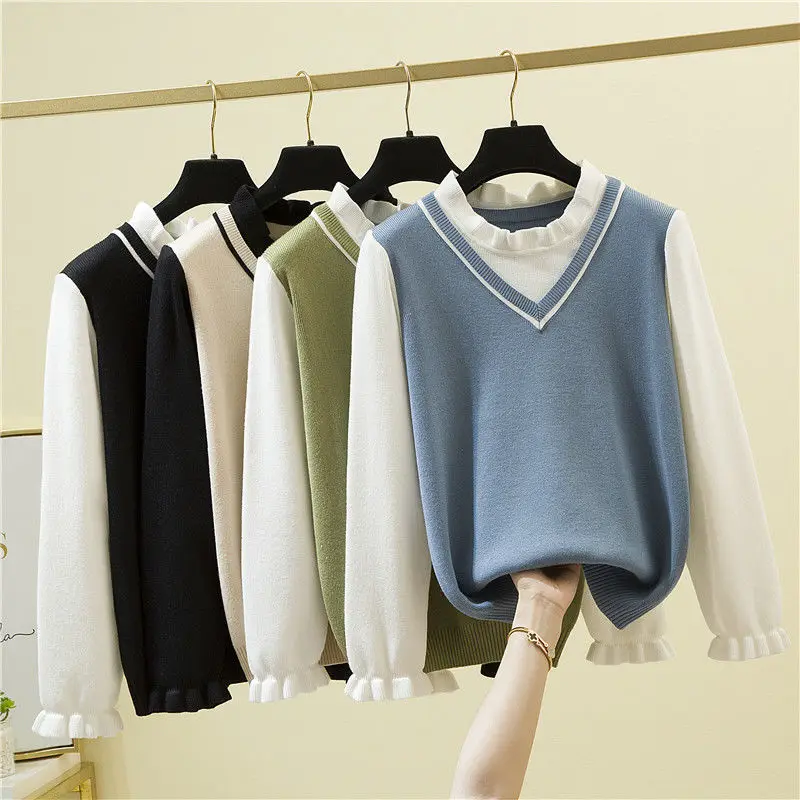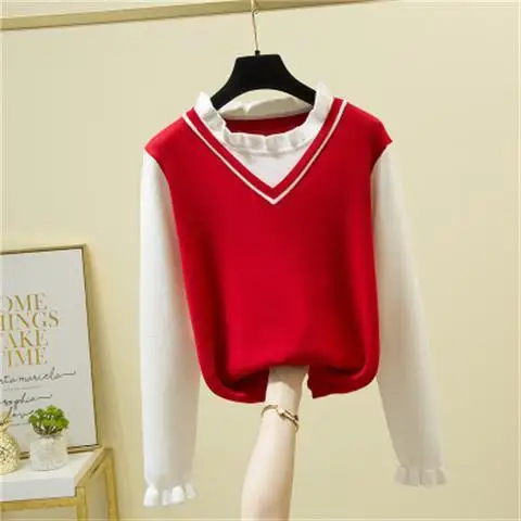 IeWVgXVGДолго искали 2022 New Autumn Winter Korean Knitting Sweaters Women Long Sleeve Classic Two Fake Pieces Color Contrast All-match Lady Top, но не могли найти? Предоставляем вашему вниманию 2022 New Autumn Winter Korean Knitting Sweaters Women Long Sleeve Classic Two Fake Pieces Color Contrast All-match Lady Top по лучшей цене на рынке!