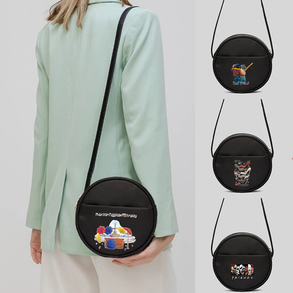 "2022 Personality Woman Bag Cartoon Friends Pattern Printing Series Commuter Bag Medium Casual Canvas Black Basic Model Reusable" * Buy Now Just For 5$