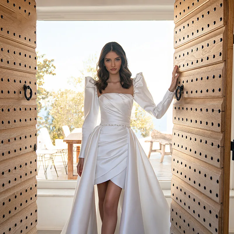 PbgmUPIFtyДолго искали 2022 Simple Long Sleeves Satin Wedding Dress With Detachable Train Elegant A-Line Pleat Beading Backless With Button Bridal Gown, но не могли найти? Предоставляем вашему вниманию 2022 Simple Long Sleeves Satin Wedding Dress With Detachable Train Elegant A-Line Pleat Beading Backless With Button Bridal Gown по лучшей цене на рынке!