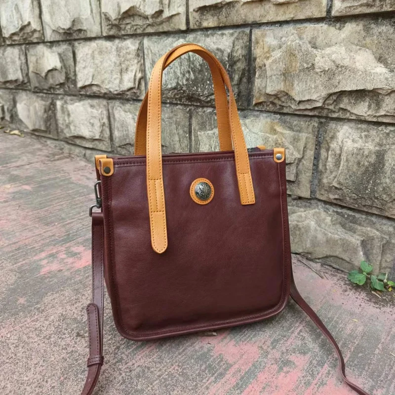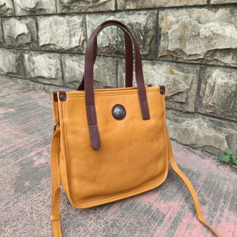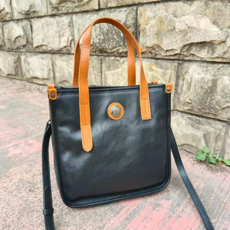 xyKBCWdqHZHere you can buy 2022 Simple Niche Retro Tote Bag Contrast Color Vegetable Tanning Water Dyed Cowhide Large Capacity Portable Shoulder Messenger with free delivery to your post office.