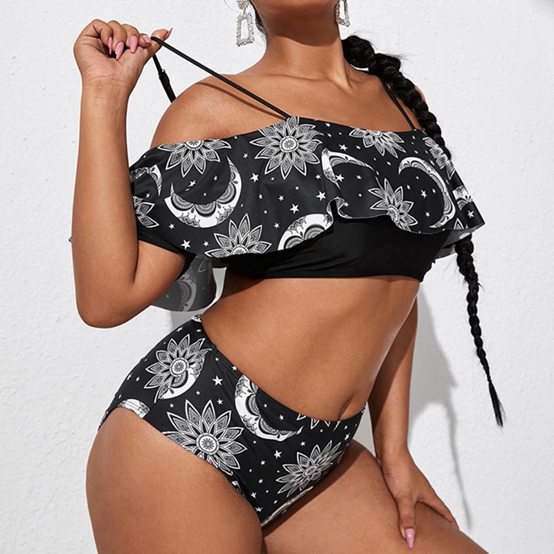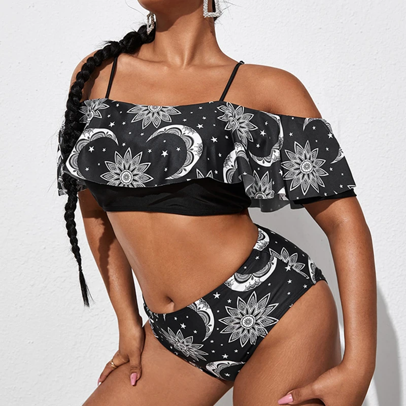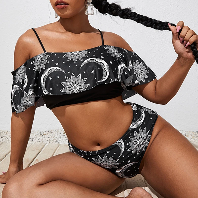 fnuRddeTVgHere you can buy 2022 Solid Red Hanky Hem Ruffle Off The Shoulder Plus Size Women's Bikini 4XL Large Size Ruched High Waisted Swimsuit Female with free delivery to your post office.