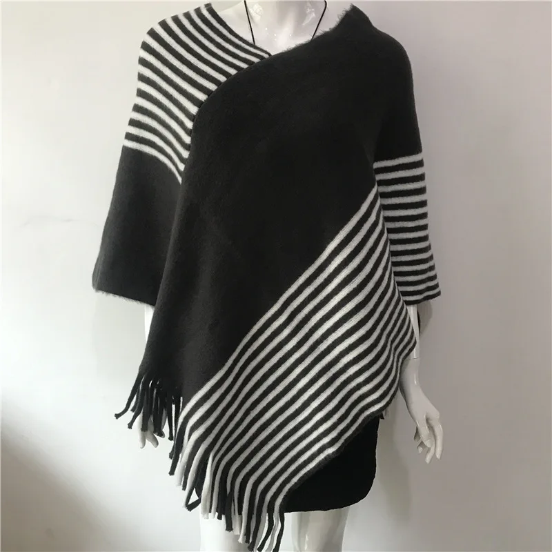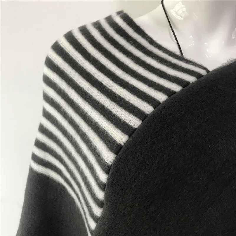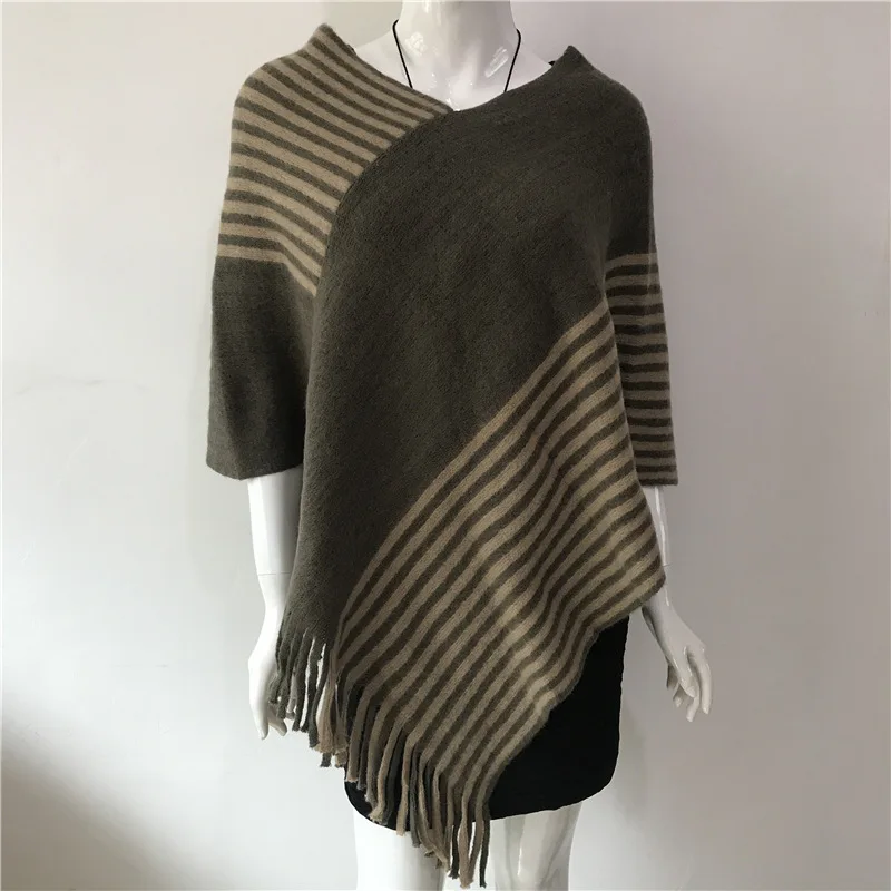 "2022 Spring Autumn New Loose Stripe Two-color Contrast Tassel Pullover Cloak Shawl Women Sweater Kitting Poncho Cape Red" * Buy Now Just For 5$