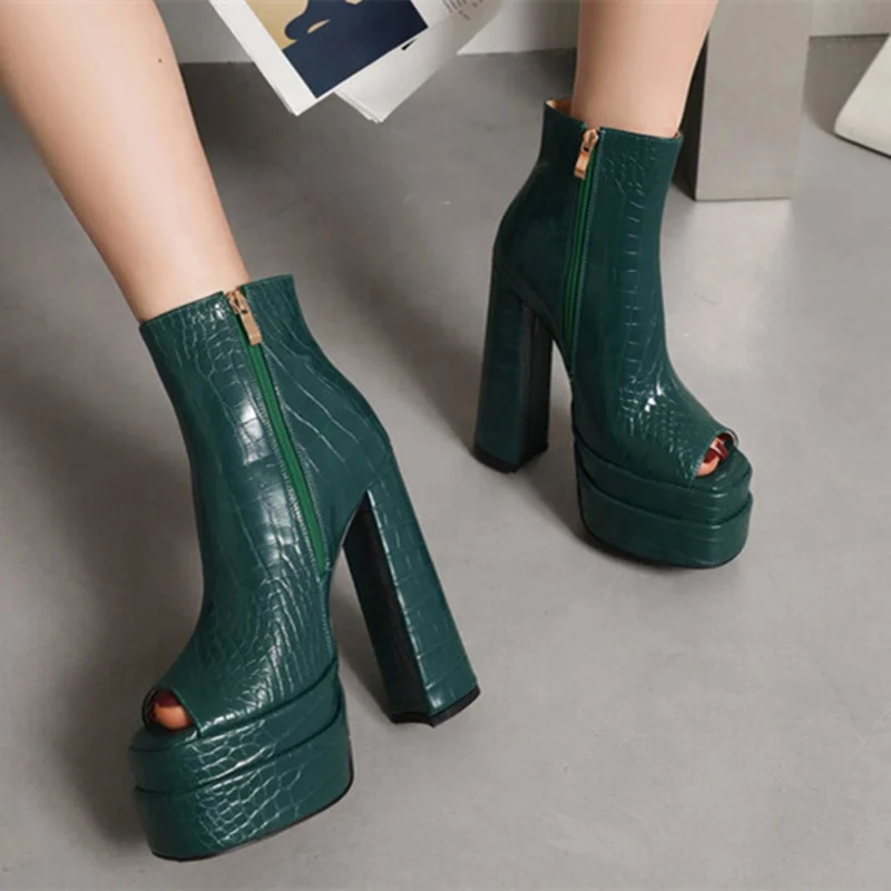 «2022 Spring Comfortable Stone Print Shoes Booty Chunky High Heel Platform Peep Toe Ankle Boots Sandal Slide Zip Big Size 43» по лучшей цене на рынке! Всего за 55$ (5225рублей)