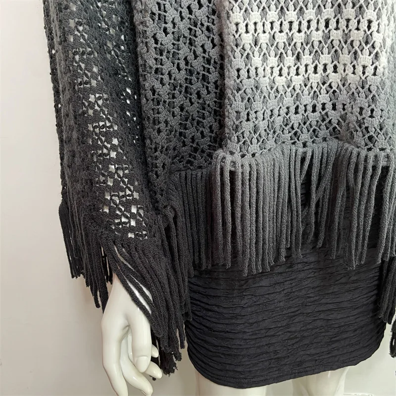 "2022 Spring Hanging Dyed Shawl Tassels On Four Sides Gradient Color Wavy Pattern Loose Large Knitted Hollow Pullover White" * Buy Now Just For 7$