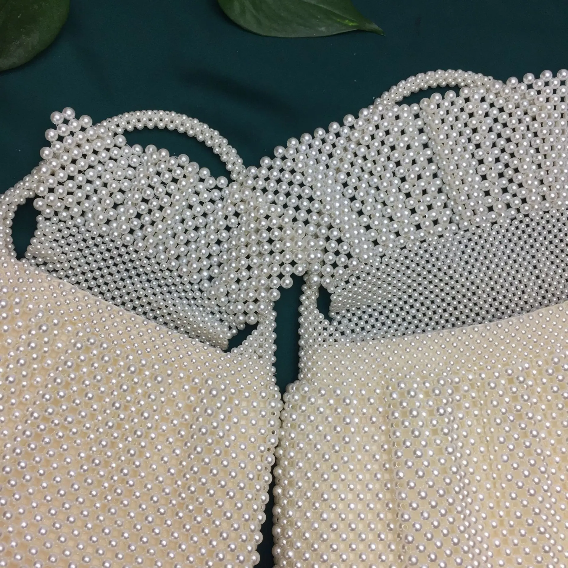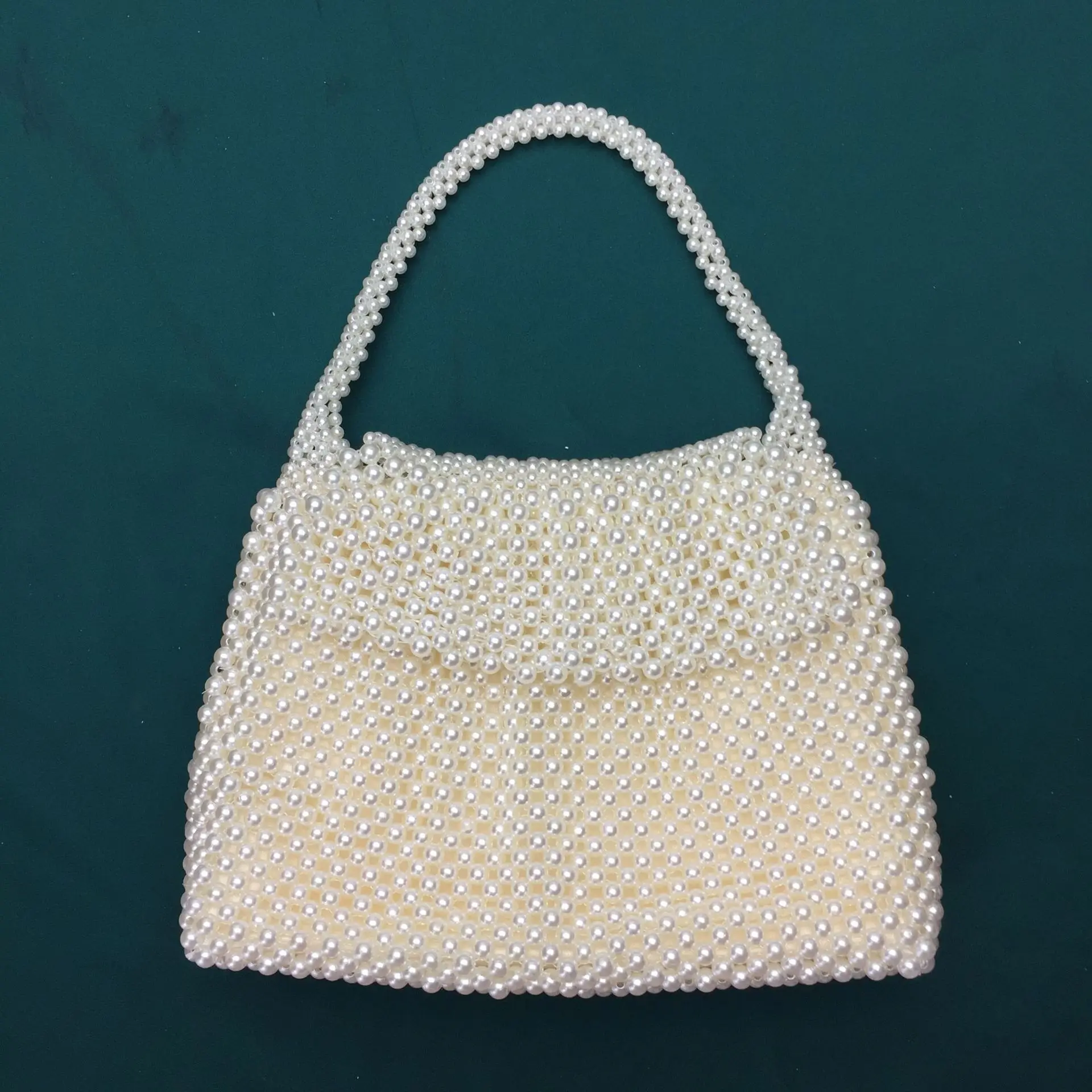 2022 Spring Summer White Pearl Woven Beaded Large Handle Bag Bridal Dinner Designer Handbag Inner Zipper Satin Inner - Купить с бесплатной доставкой