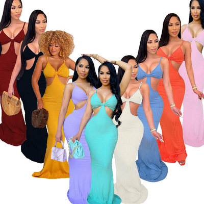 Sexy Spaghetti Strap V Neck Low Chest Bag Hip Split Summer Woman Dress Club Vestidos Dresses For Women's Clothes ΠΆΠ΅Π½ΡΠΊΠΎΠ΅ ΠΏΠ»Π°ΡΡΠ΅