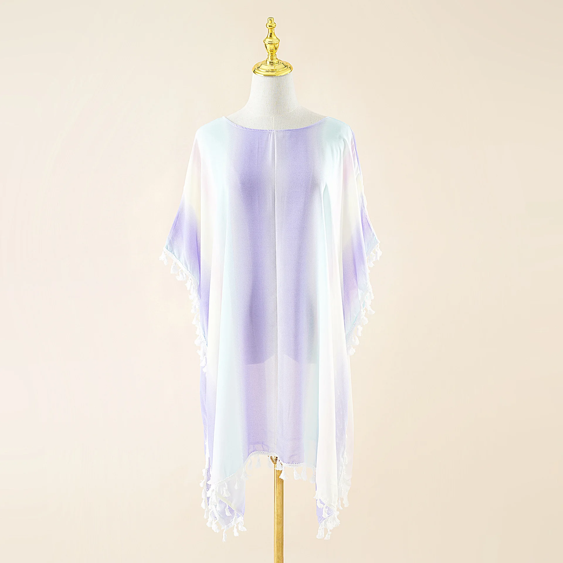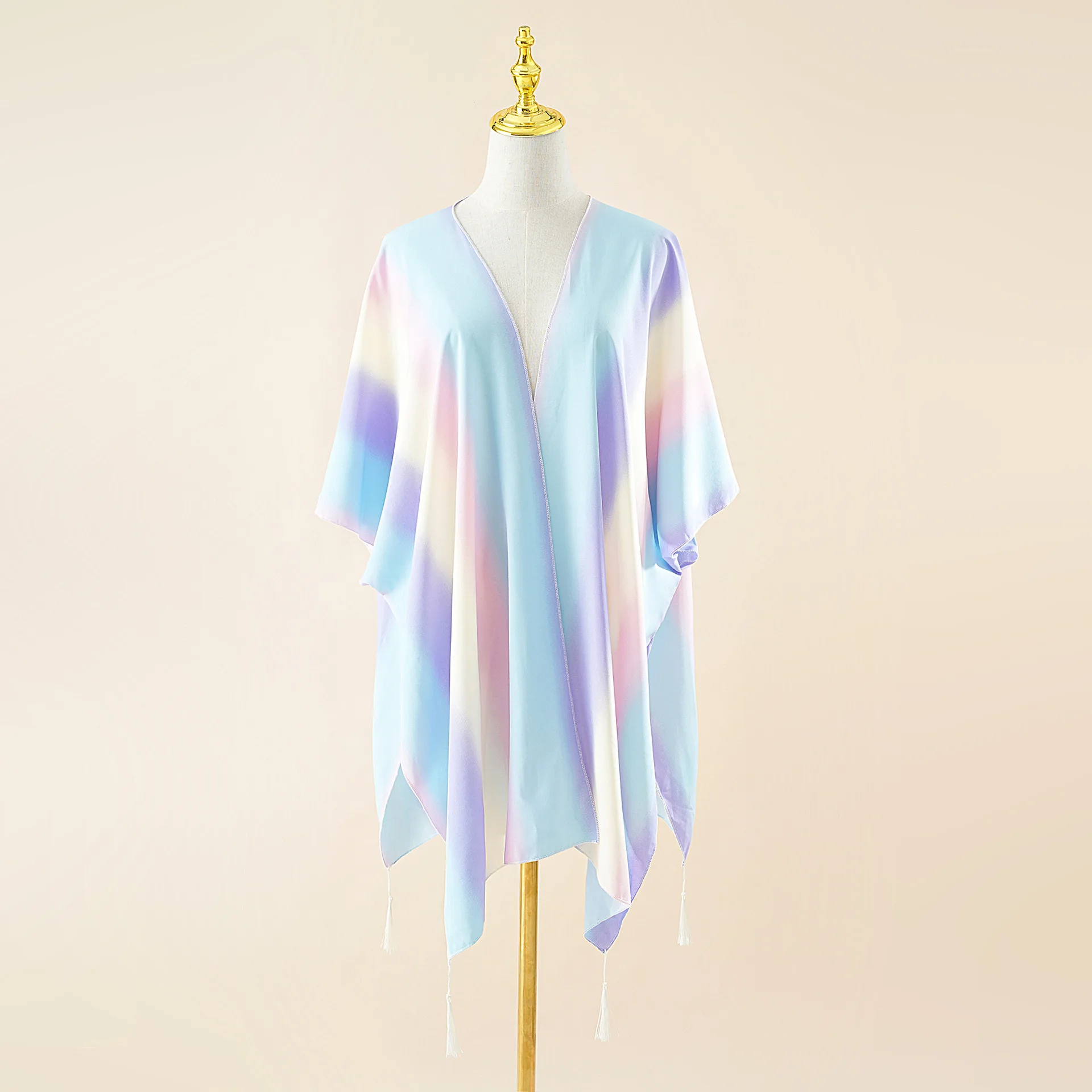 "2022 Summer New Gradient Color Chiffon Tassel Beach Shawl Sunscreen Sunshade Cardigan Cloak Coat Poncho Capes" * Buy Now Just For 6$