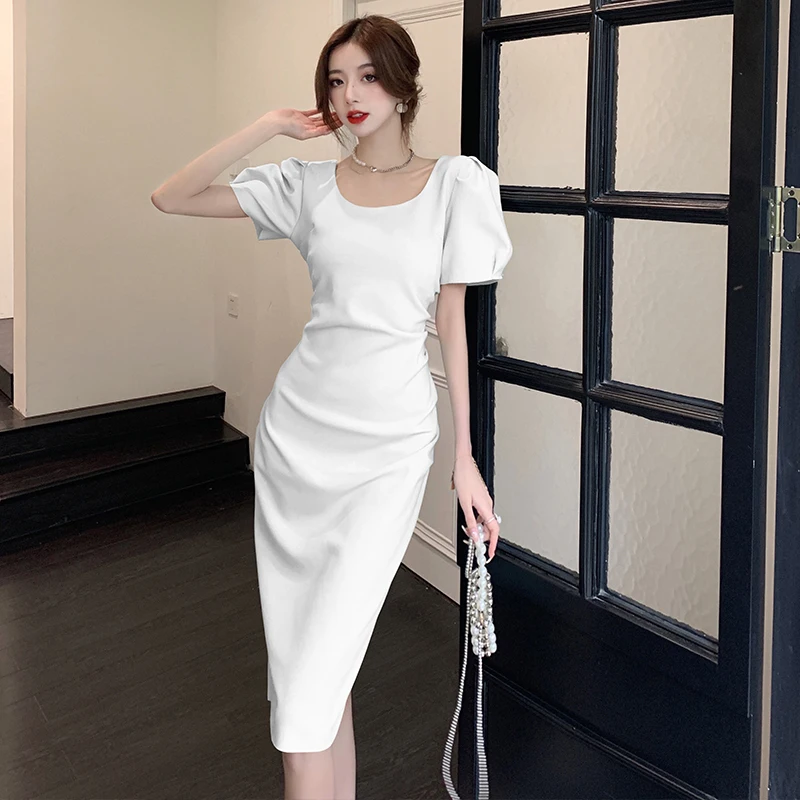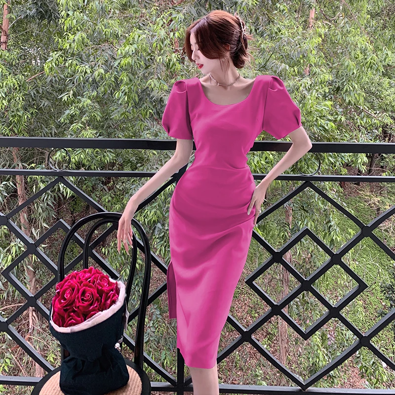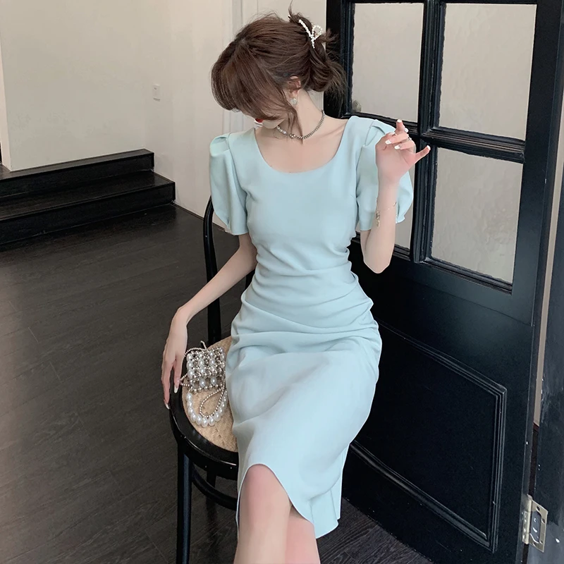 «2022 Summer New Women's High-end Temperament Retro Square Neck Short Sleeve Waist Closing Versatile French Split Fashion Dress» по лучшей цене на рынке! Всего за 18$ (1710рублей)