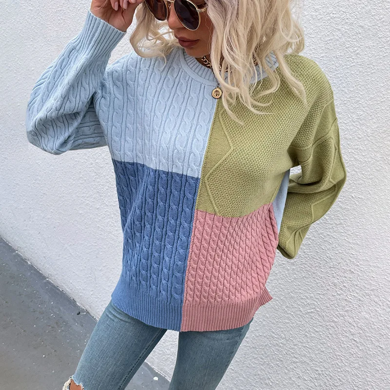 PPxdaUvlwgДолго искали 2022 Sweater Women's Autumn and Winter New Stitching Twisted Square Contrast Color Knitted Lantern Sleeve Sweater, но не могли найти? Предоставляем вашему вниманию 2022 Sweater Women's Autumn and Winter New Stitching Twisted Square Contrast Color Knitted Lantern Sleeve Sweater по лучшей цене на рынке!