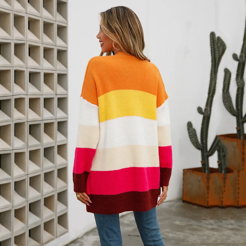 «2022 Women's Autumn and Winter New Mid-Length Stitching Color Street European and American Style Cardigan Sweater Jacket Women» по лучшей цене на рынке! Всего за 29$ (2755рублей)