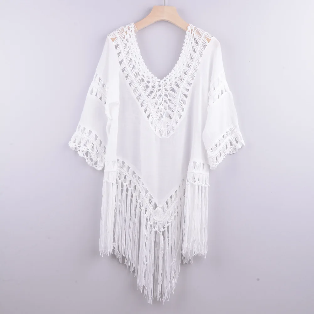 "2022 new spring and autumn hand hook patchwork solid color hollow out beach irregular tassel blouse Bikini Swimsuit vest" * Buy Now Just For 6$