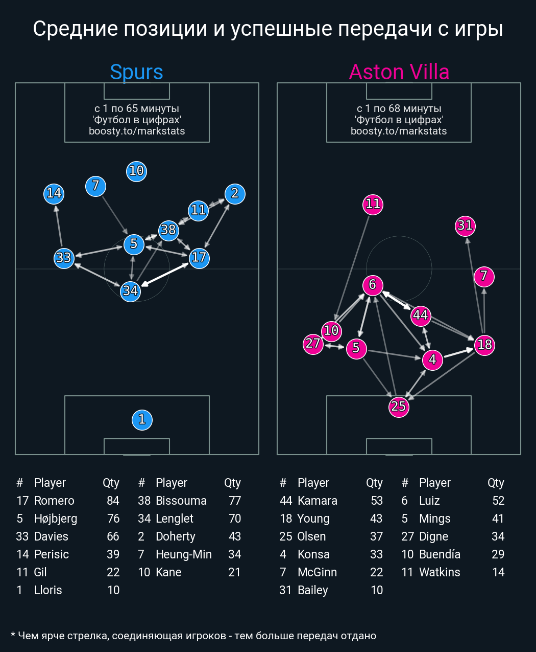 ▪ 65 успешных передач из 76 попыток (1 под удар, 2 с продвижением, 9 на трети соперника)