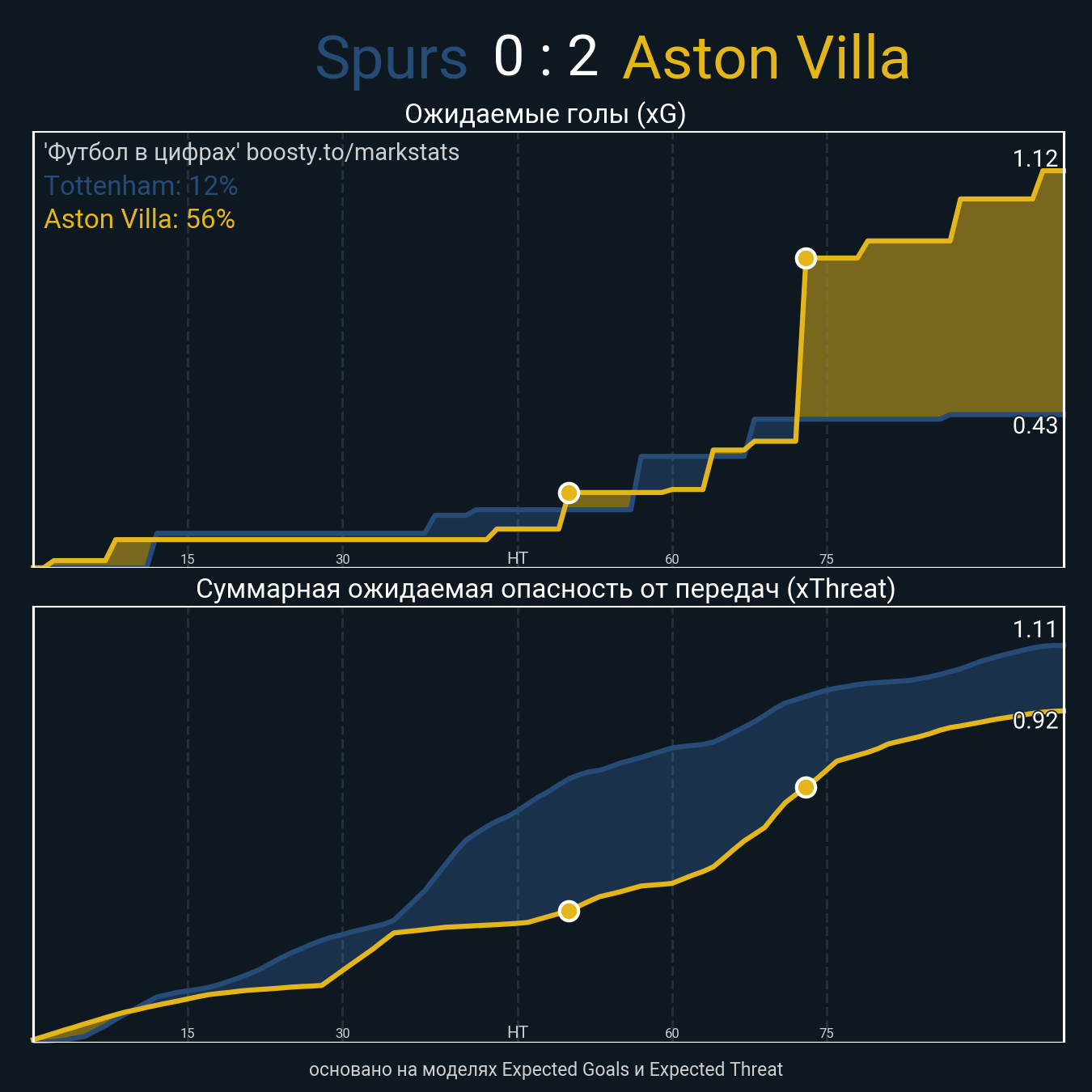 Футбол в цифрахСтатистика матча Tottenham - Aston Villa