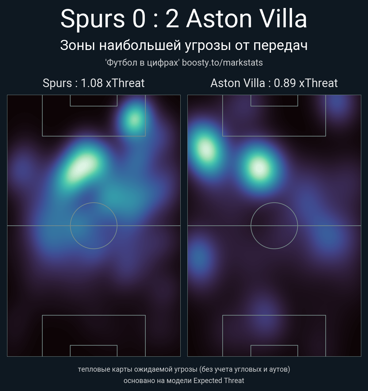 ▪ xThreat без учета угловых: 1.08 - 0.89