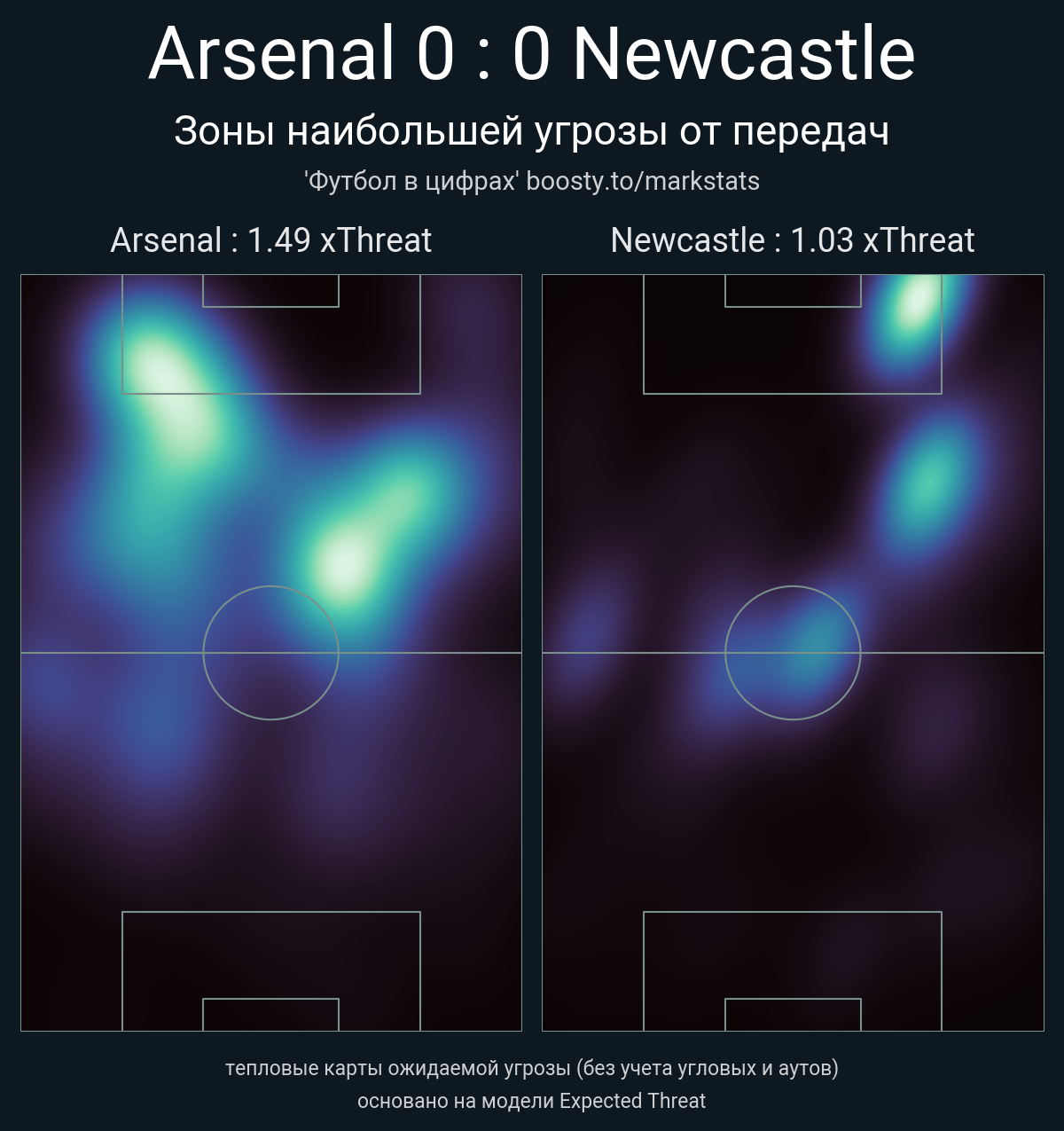 ▪ xThreat без учета угловых: 1.49 - 1.03